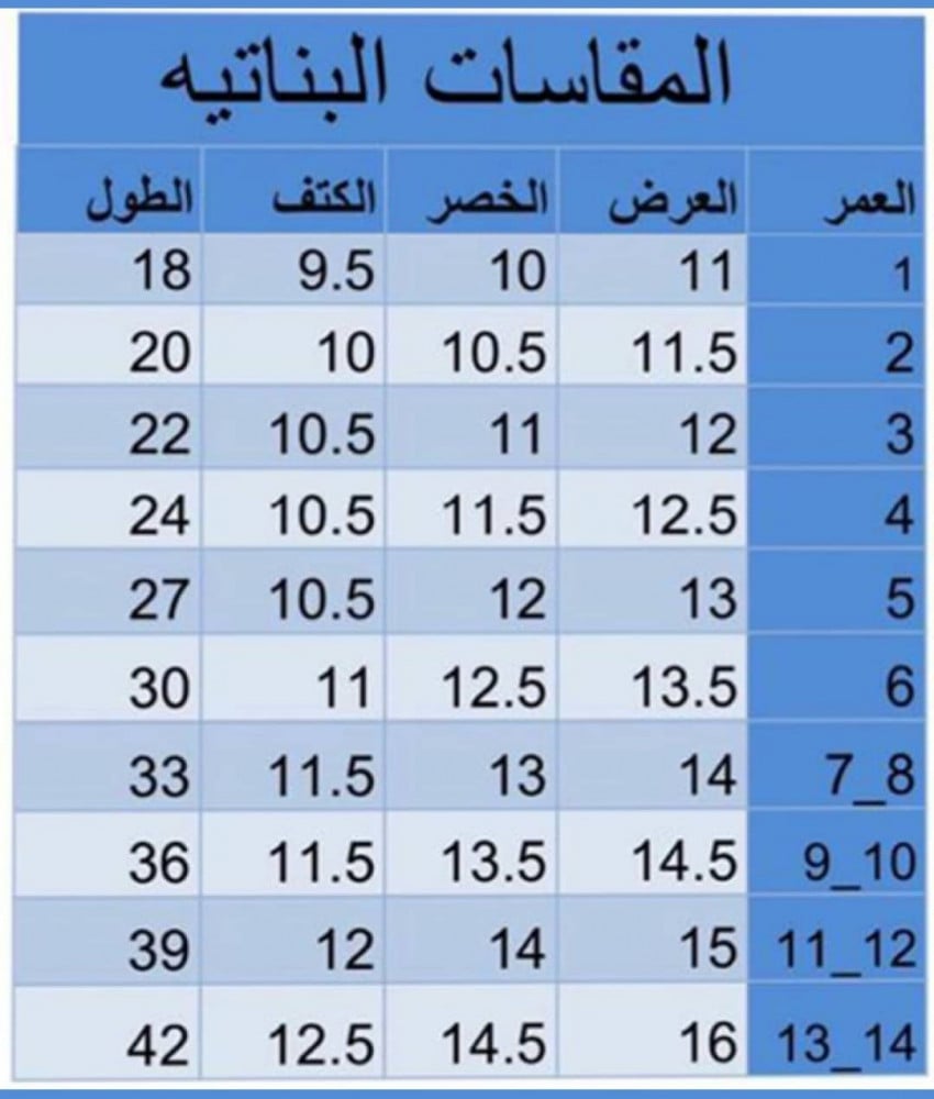يرجى التأكد من توافق القياس مع العمر للتأكد من القياس الصحيح*